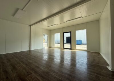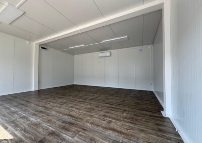 Der Boden besteht aus Sandwichelementen mit einem Kern aus 100 mm Polyurethan. Wärmedurchlässigkeit 0,21 W / m2K. Feuerhemmendes Polyurethan mit PVC-Bodenbelag der Feuerwiderstandsklasse E60 OSB 12 mm.