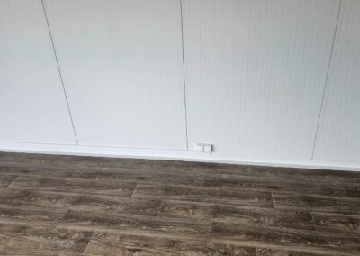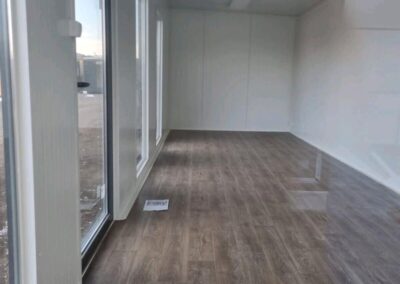 Der Boden besteht aus Sandwichelementen mit einem Kern aus 100 mm Polyurethan. Wärmedurchlässigkeit 0,21 W / m2K. Feuerhemmendes Polyurethan mit PVC-Bodenbelag der Feuerwiderstandsklasse E60 OSB 12 mm.